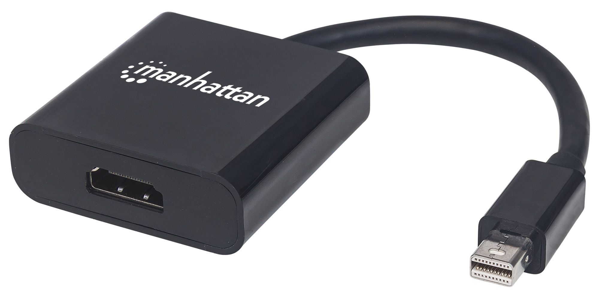 Conecta fácilmente una fuente mini-DisplayPort a un cable HDMI.Los Adaptadores Pasivos Mini-DisplayPort a HDMI Manhattan establecen una conexión rápida y cómoda entre una fuente de medios equipada con mini-DisplayPort y un cable de monitor HDMI. Este adaptador activo supera las limítaciones de no contar con una tarjeta de video/gráfica DP++ (de modo dual) y convierte la señal a una pantalla. Es ideal para videojuegos en multi-pantallas, señalización digital en pantallas de retail, mercado financiero y otras aplicaciones. Sus contactos con baño de níquel y su blindaje ayudan a que los Adaptadores mini DisplayPort a HDMI MANHATTAN proporcionen transmisiones de vídeo HD claras y estables en aplicaciones multimedia en la casa y oficina. Sus cubiertas resistentes de PVC y botas moldeadas con alivio de tensión, ayudan a asegurar que las conexiones se mantengan ininterrumpidas y estables.