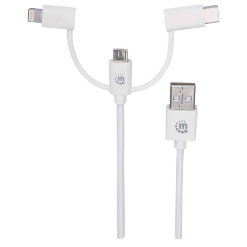 Cable 3 En 1 Manhattan 353434 Micro Usb Usb-C Lightning Blanco 1M
