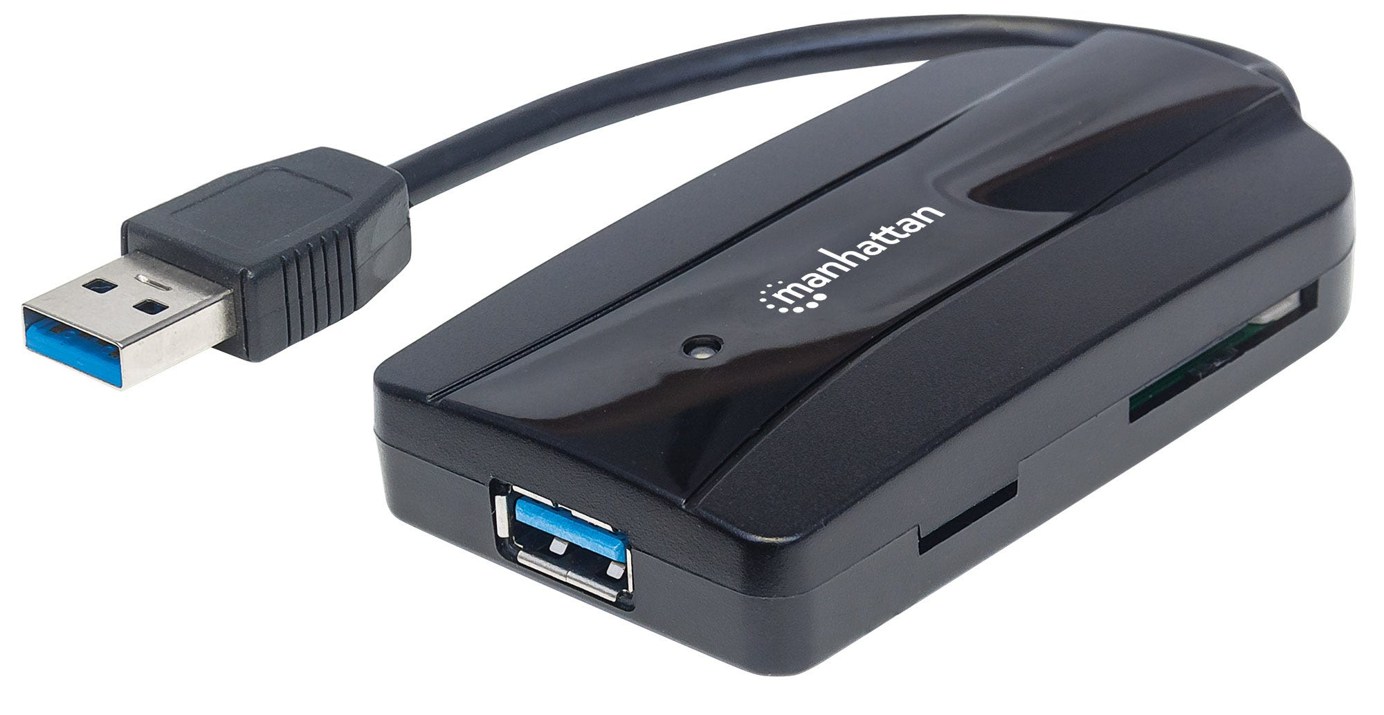 Hub Usb 3.0 Manhattan 3 Puertos, Lector De Tarjetas Negro 163590