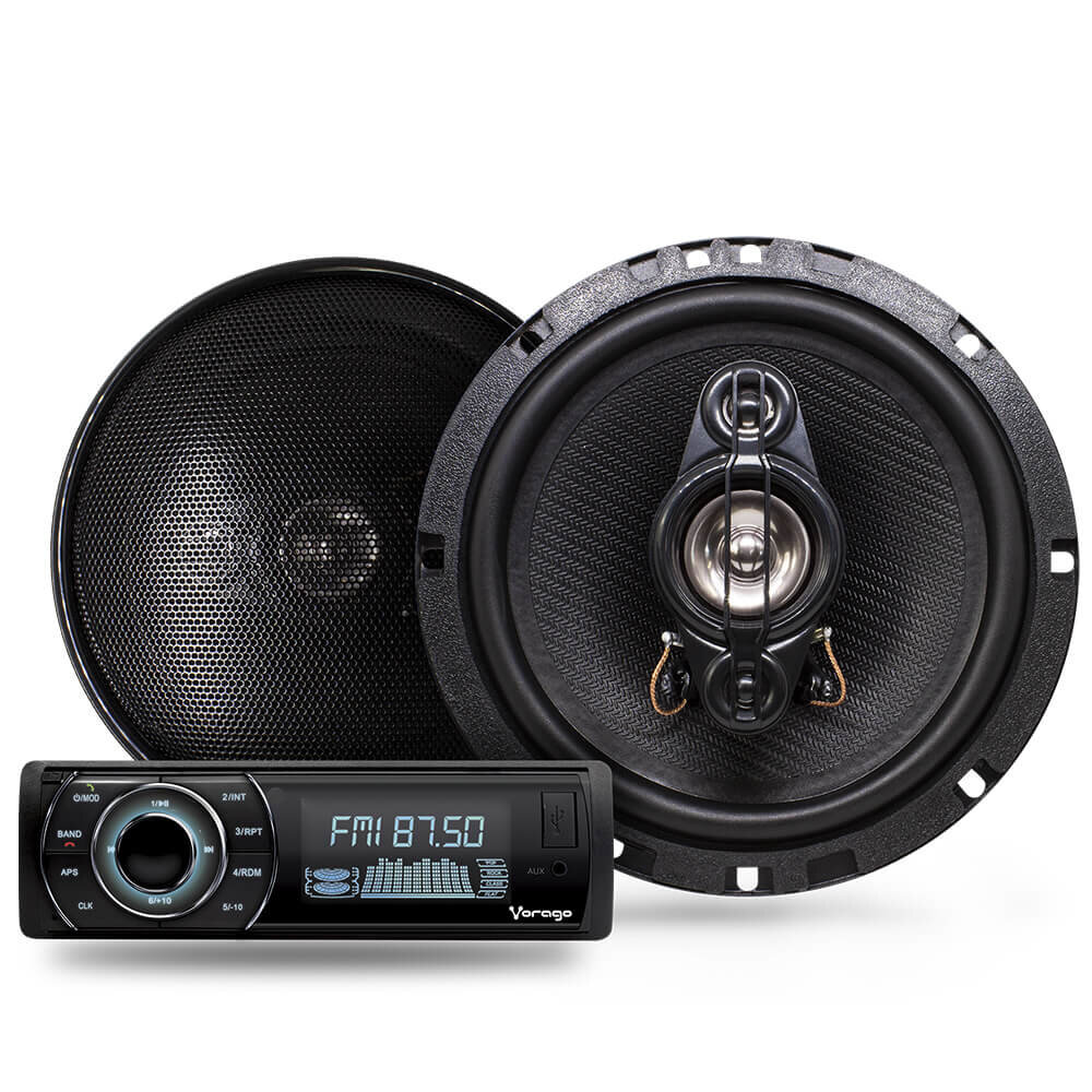Kit Autoestereo Vorago Car-300-S Estereo Car-300 + 2 Bocinas 6.5" 25W