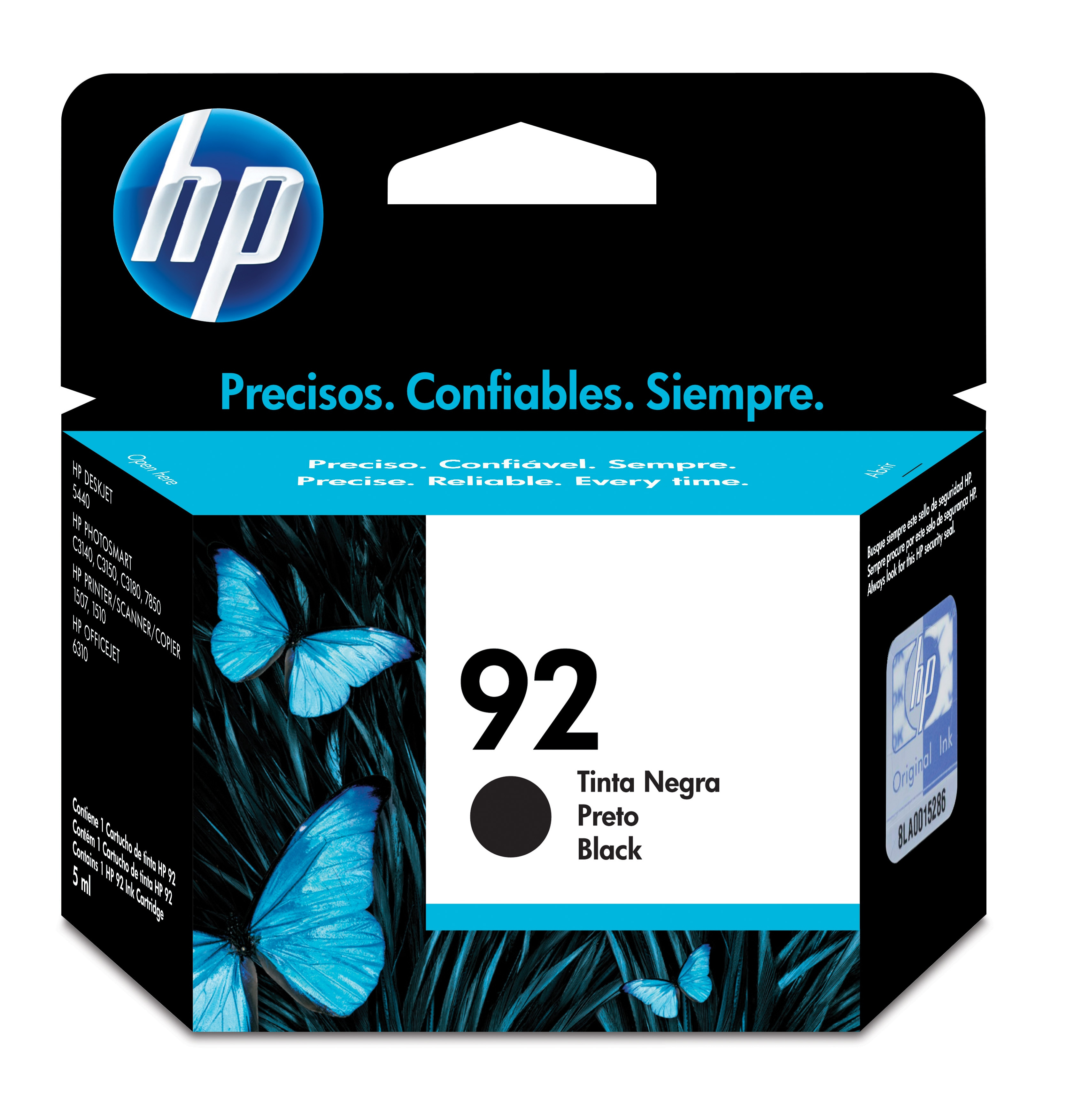 HP Cartucho original de tinta negra 92, Negro, Tinta a base de pigmentos, 1 pieza(s)