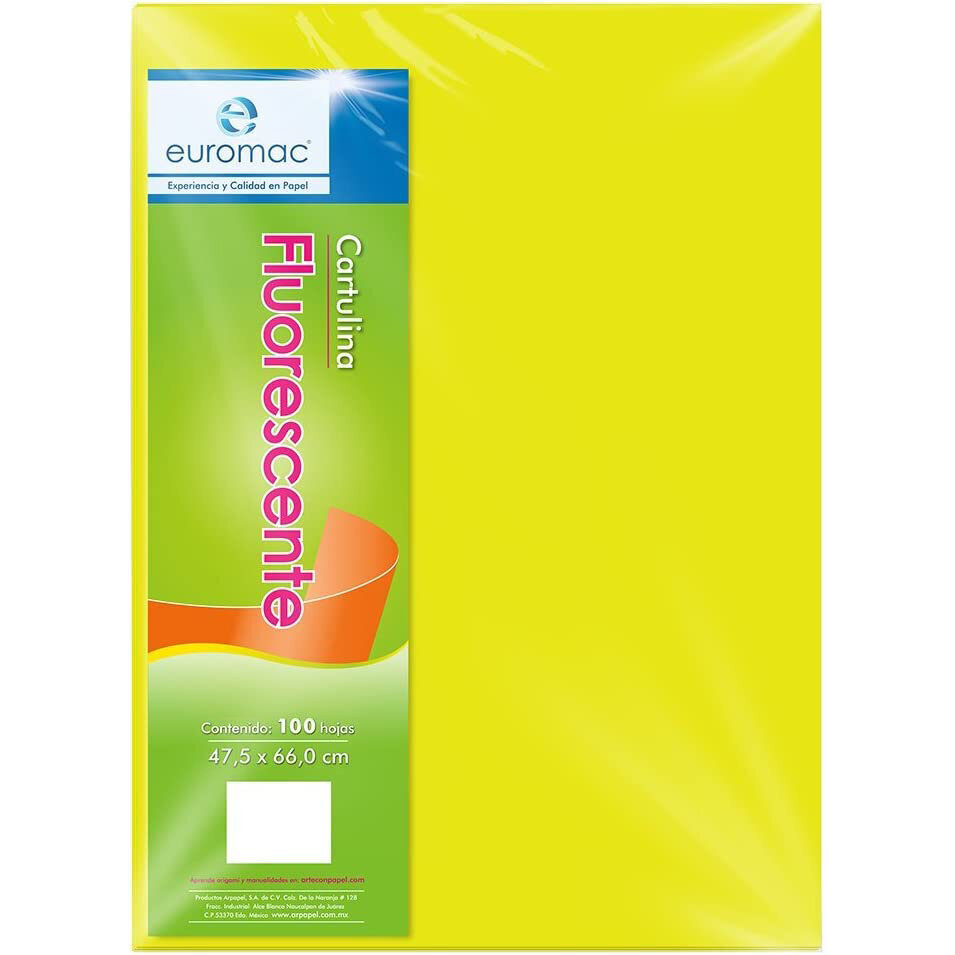 Cartulina Euromac Fluorescente Amarilla 47.5 X 66 Paq C/100H