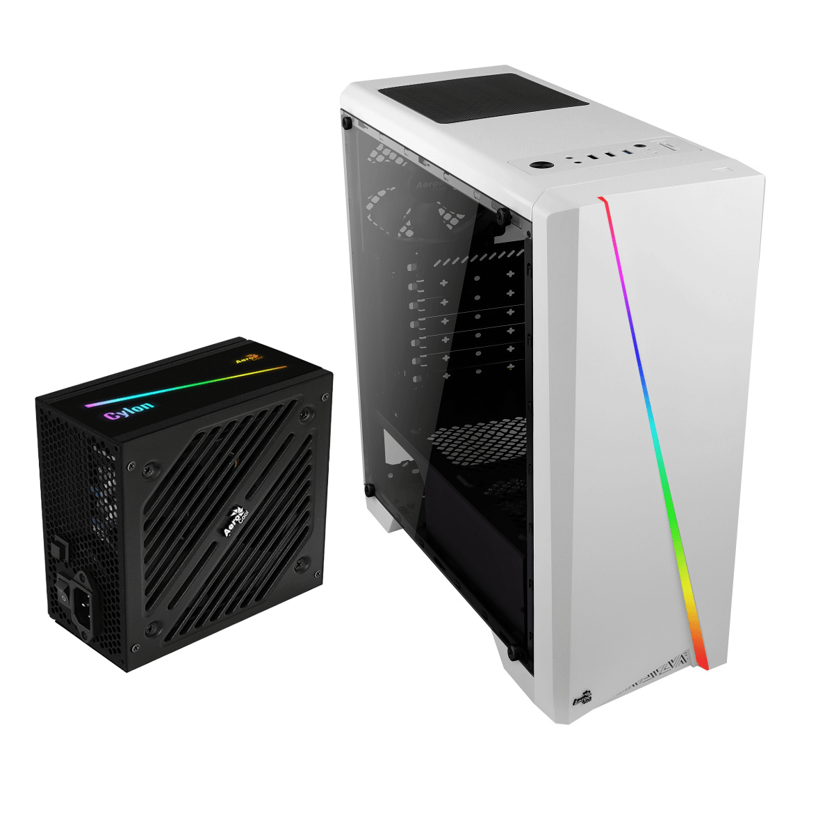 Gabinete Aerocool Cylon Argb M-Tower Atx Fuente De Poder 700W 80 Plus Bronze Blanco Kitaercylwht700W