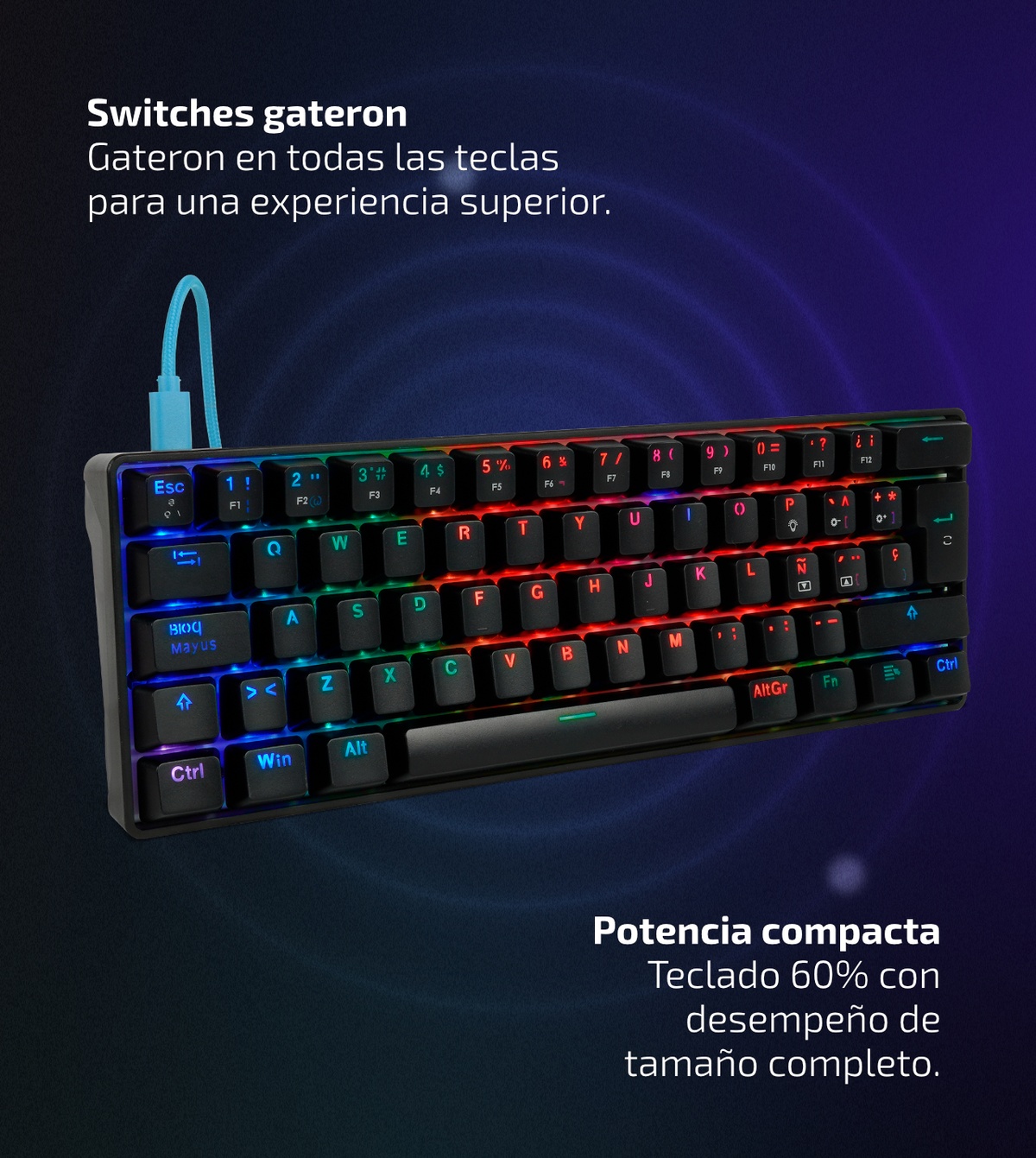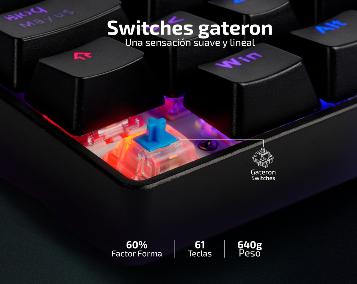 Sus switches Gateron en todas las teclas te garantizan una experiencia sensorial única y un tiempo de vida sin igual.
