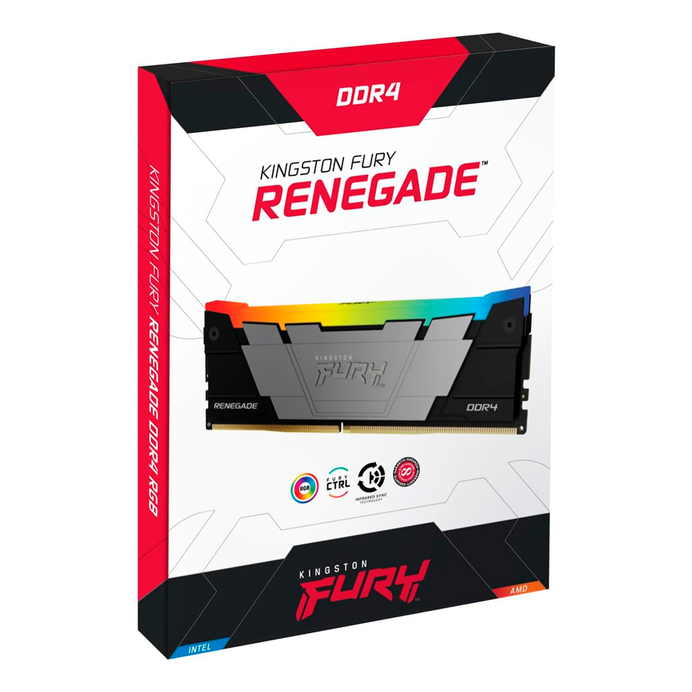Se presenta en módulos individuales de 8GB a -32GB de capacidad, y en kits de 2, 4 y 8 unidades con capacidades de 16 GB a 256 GB. Kingston FURY Renegade DDR4 RGB es una memoria Preparada para AMD Ryzen, Intel® XMP Certified y XMP Ready.