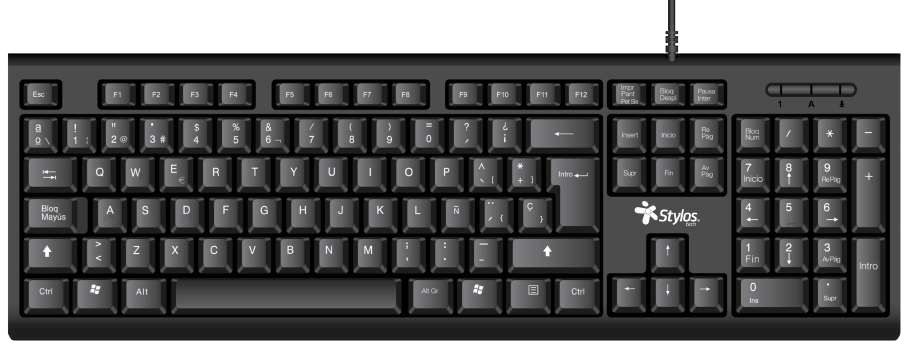 Stylos STPKTM4B, Tamaño completo (100%), USB, Negro, Ratón incluido