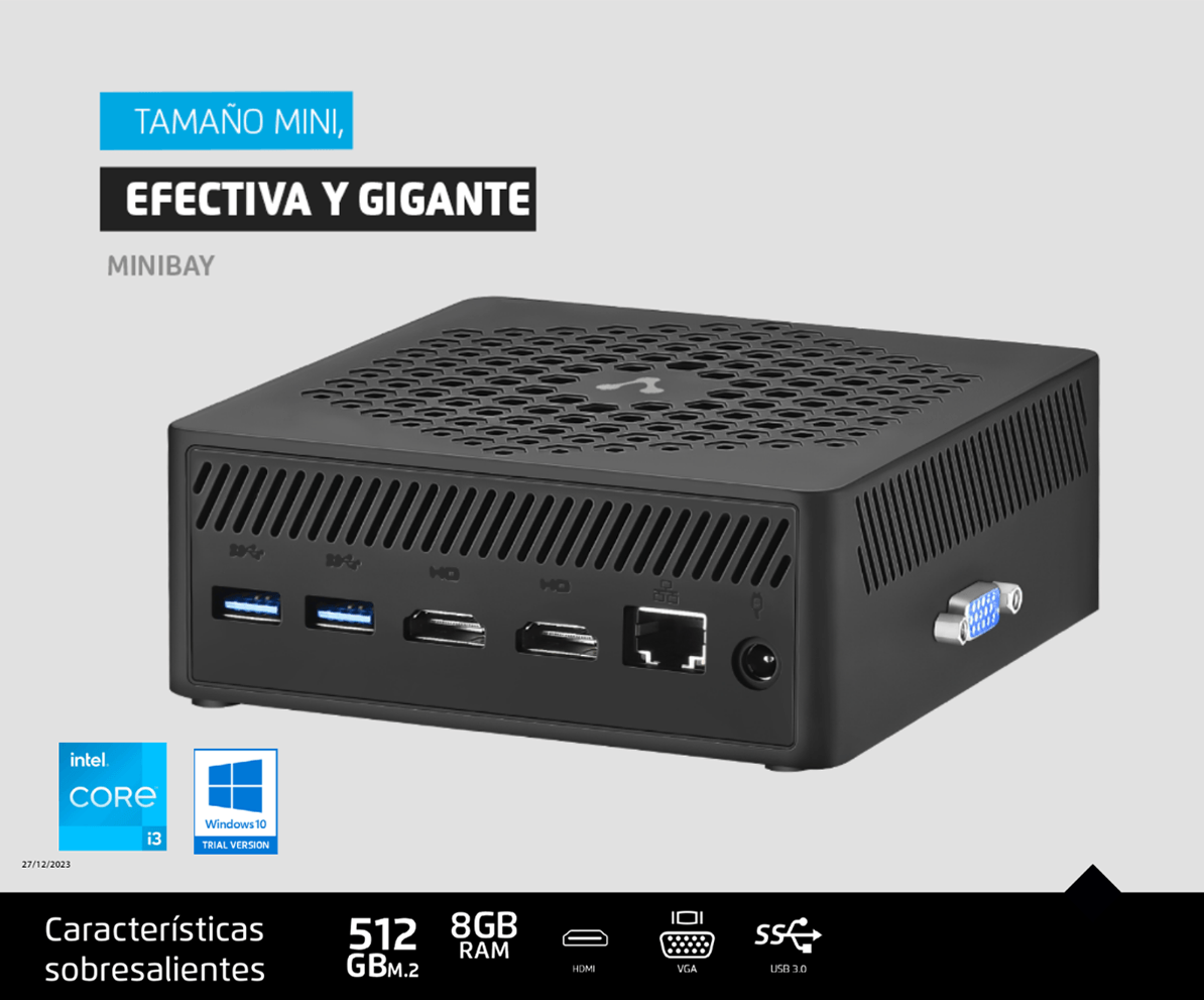 Encuentra las configuraciones de lÃnea o si deseas una diferente, acércate a tu distribuidor autorizado, ya que la MiniBay está diseñada para que puedas añadir la RAM y almacenamiento que necesites.