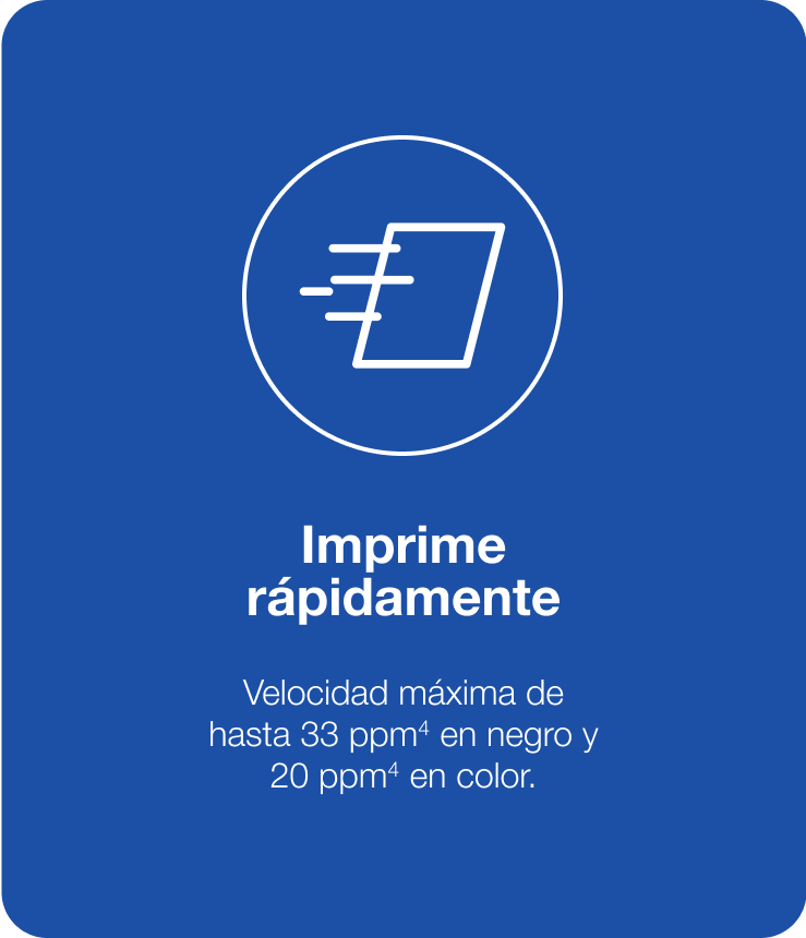 Mayor productividad: ADF de 30 hojas, dúplex automático (A4 / Carta), capacidad de entrada de papel de 250 hojas, velocidades de impresión rápidas (ISO Negro 15.5 ppm | Color 8.5 ppm)