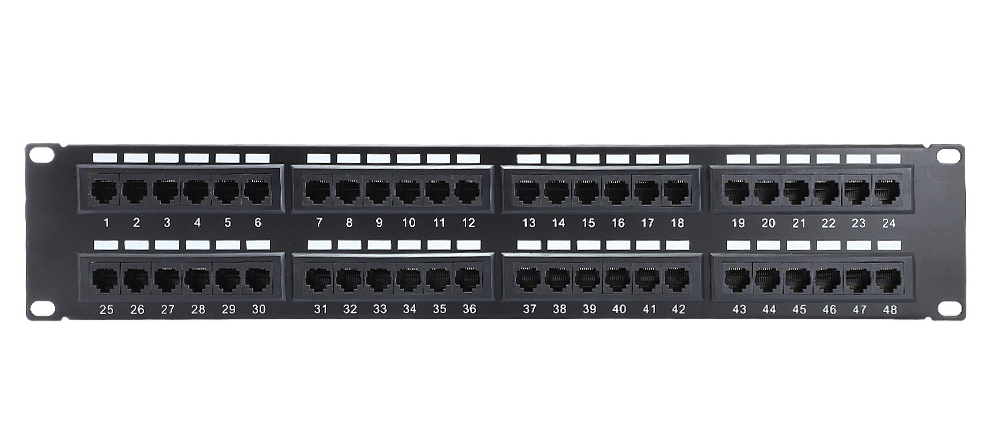 PATCH PANEL ENSON ENS-PAT48C6A 2UR PRECARGADO CAT6A 48 PUERTOS MONTAJE EN RACK ESTANDAR 19 PULGADAS