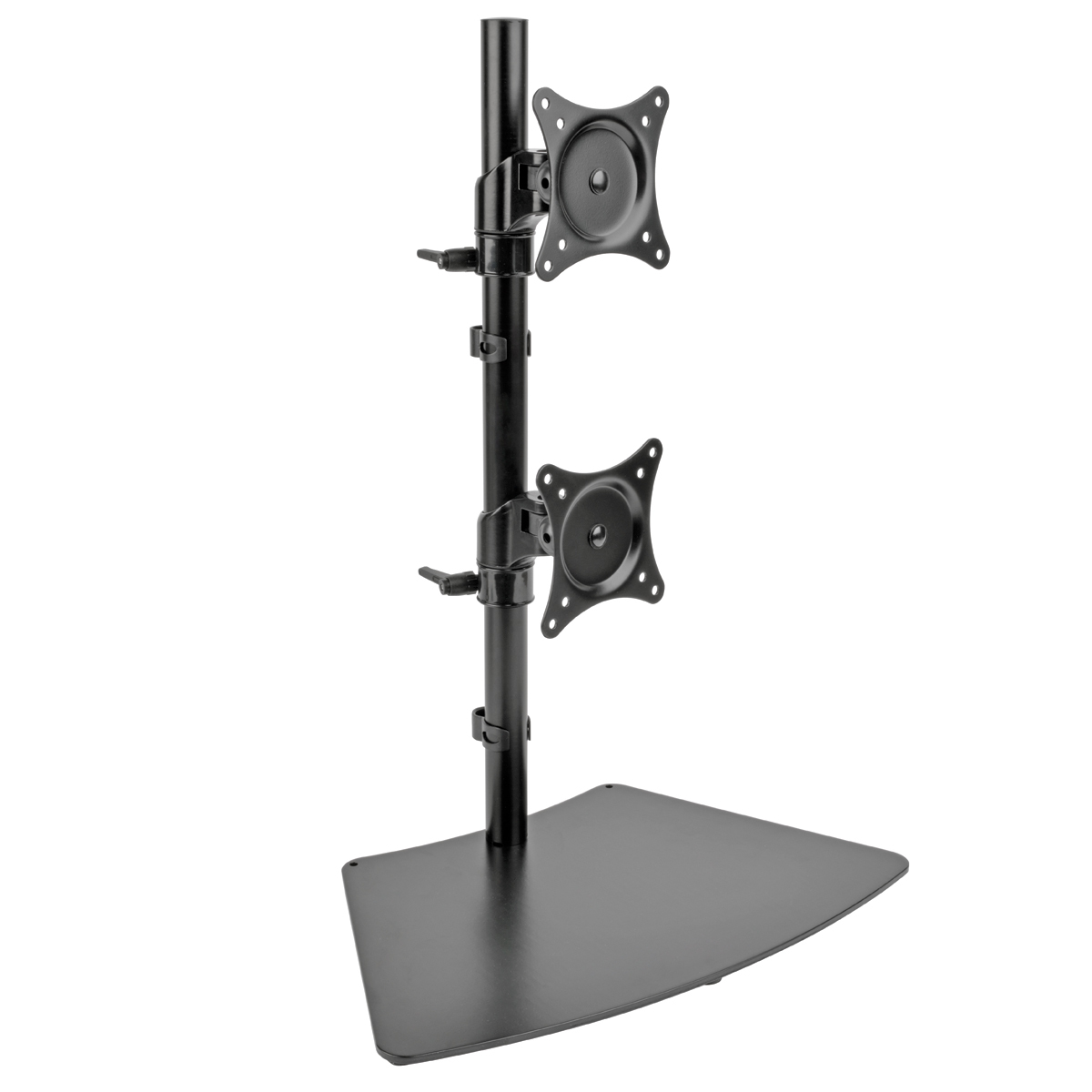 La Abrazadera / Soporte de Escritorio Vertical para Doble Pantalla Plana DDR1527SDC compatible con VESA libera espacio valioso en su escritorio, mesa o estación de trabajo permitiéndole instalar dos pantallas planas en un poste vertical. Ideal para casa u oficina, el DDR1527SDC se ajusta a la mayoría de las pantallas planas de 15" a 27". Puede utilizarlo como un soporte de escritorio o sujételo a una superficie plana de hasta 76 mm [3"] de espesor.